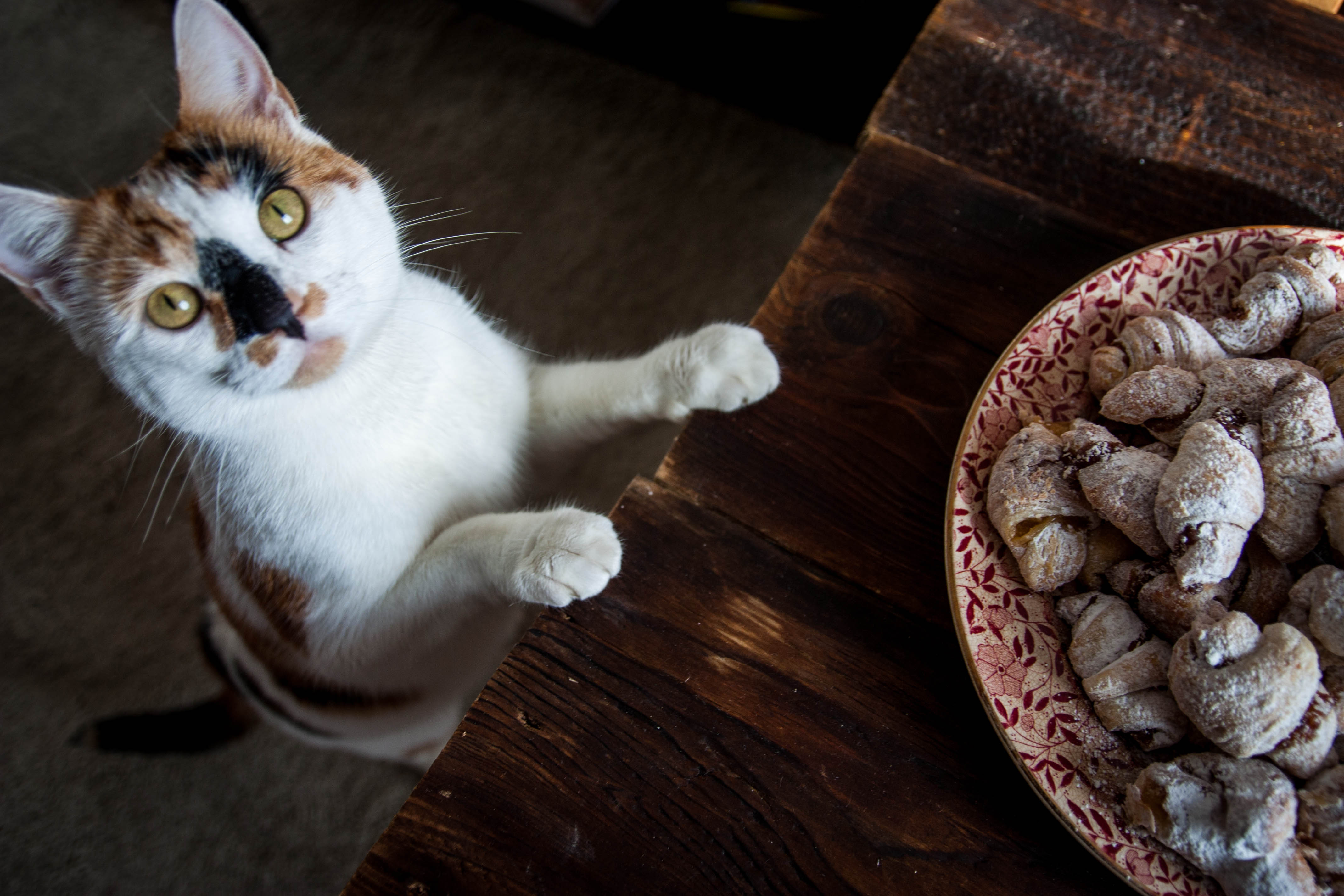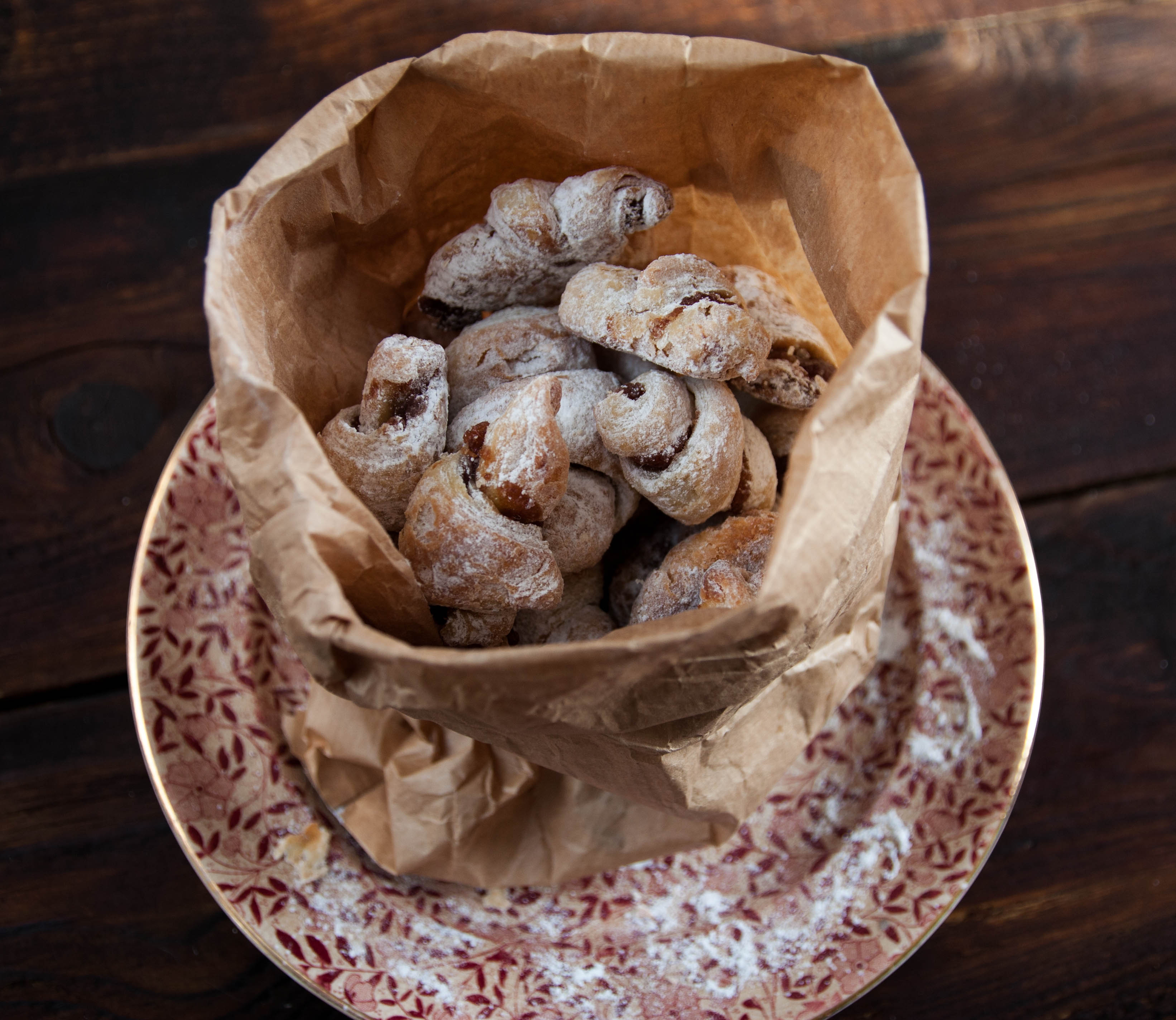 Jest taka cukiernia blisko miejsca, w którym mieszkałam w Polsce. Ciagle taka sama, nieduża, a wypieki są tak samo pyszne jak kilkanaście lat temu i wciąz można spotkać tą samą Panią. Najcześciej kupowałam jeszcze ciepłe pączki lub drożdżówki i takie maciupcie rogaliczki z różanym nadzieniem, mocno oblepione cukrem pudrem. Sprzedawane były na wagę i pakowane w papierowe torebki. To najlepsza cukiernia jaką znam. I zawsze muszę iść tam na ciepłego pączka albo rogala z marcepanem i wiśniami, tak tradycyjnie!
