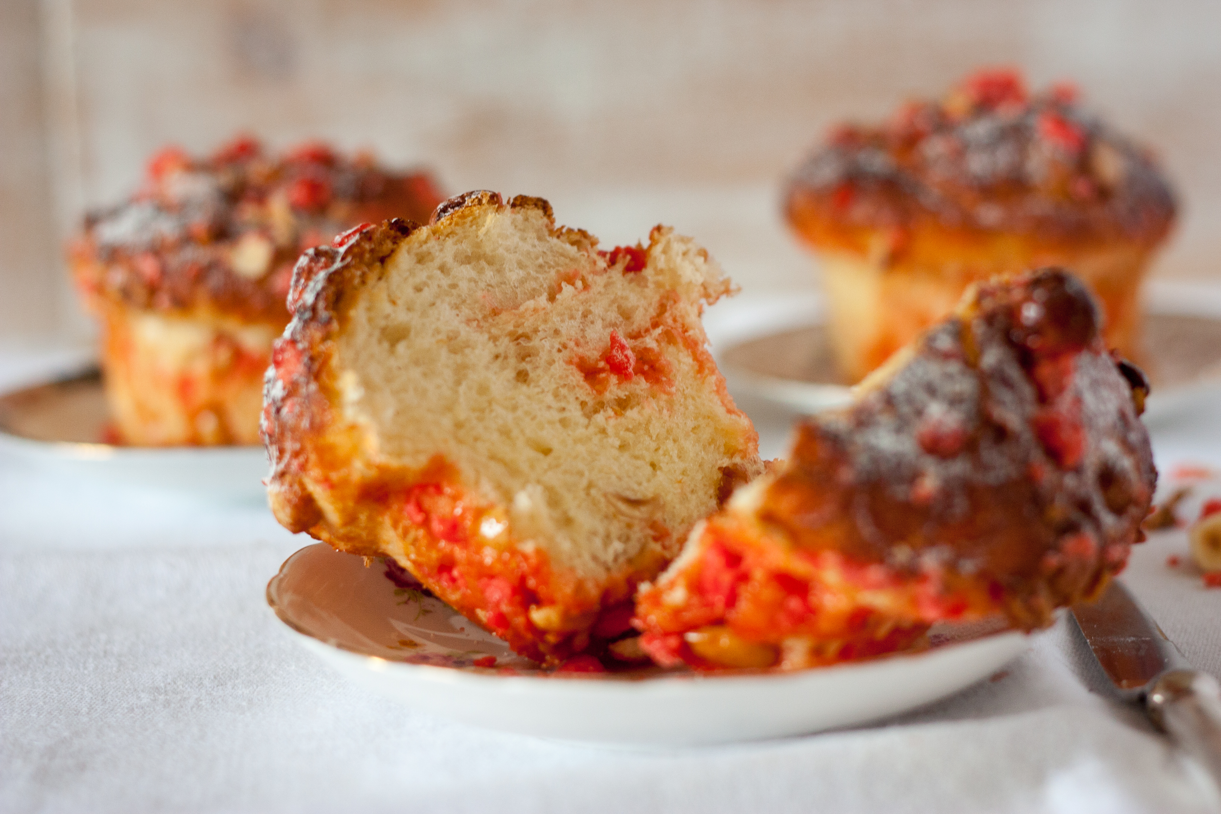 Przy wszystkich wypiekanych domowych słodkościach i tak największą miłością darzę ciasta drożdżowe. Więc kiedy w Lyonie tak bardzo zachwyciłam się brioszką Praluline, postanowiłam upiec taką w domu. Nie chciałam jej kopiować. Praluline jest wypiekana u Pralusa od 50 lat, wiec jak mogłabym….jednak przy próbie stworzenia różanej praliny, unoszący się zapach zadecydował, że jest. Brioszka z różana praliną i orzechami.