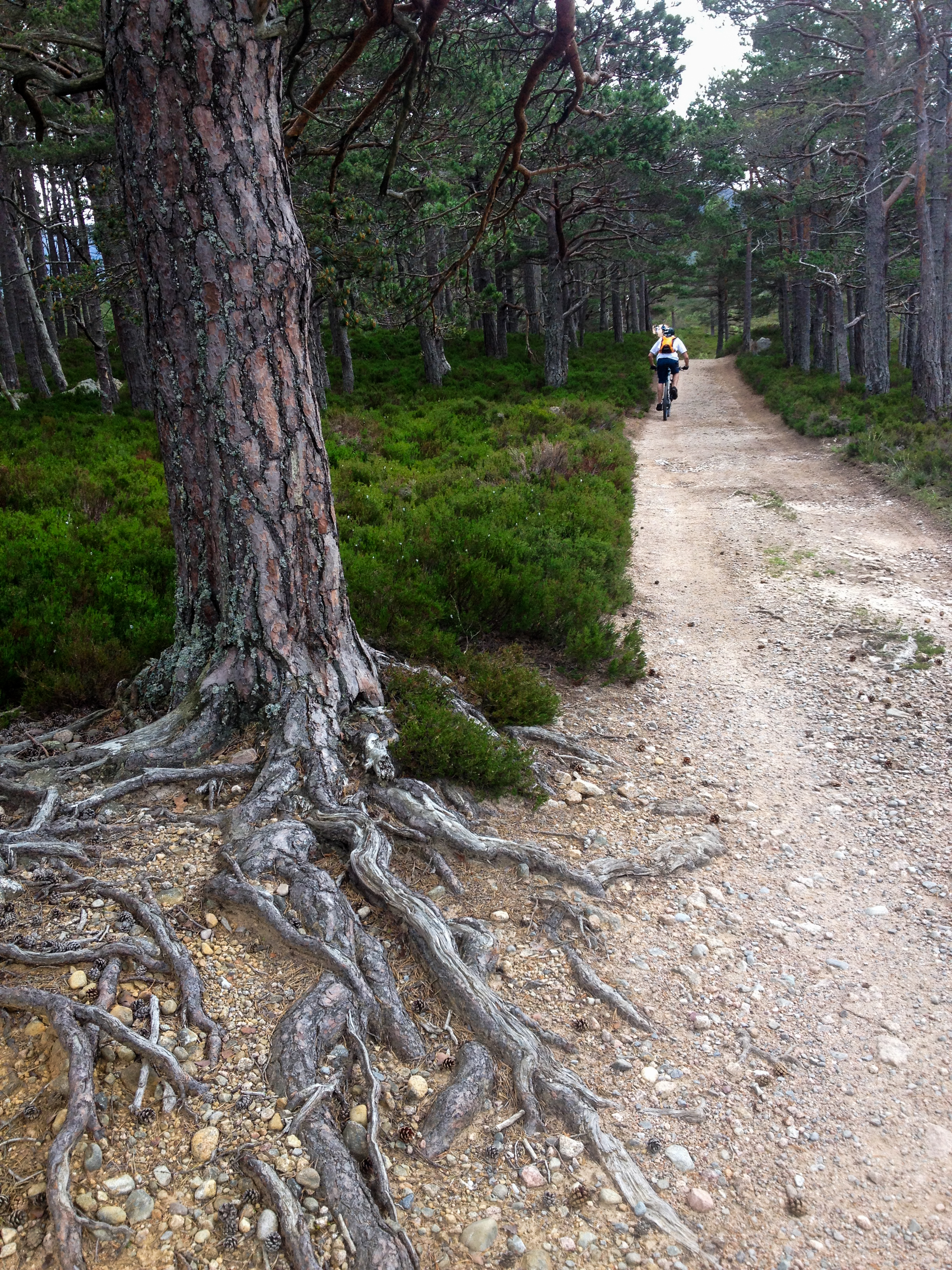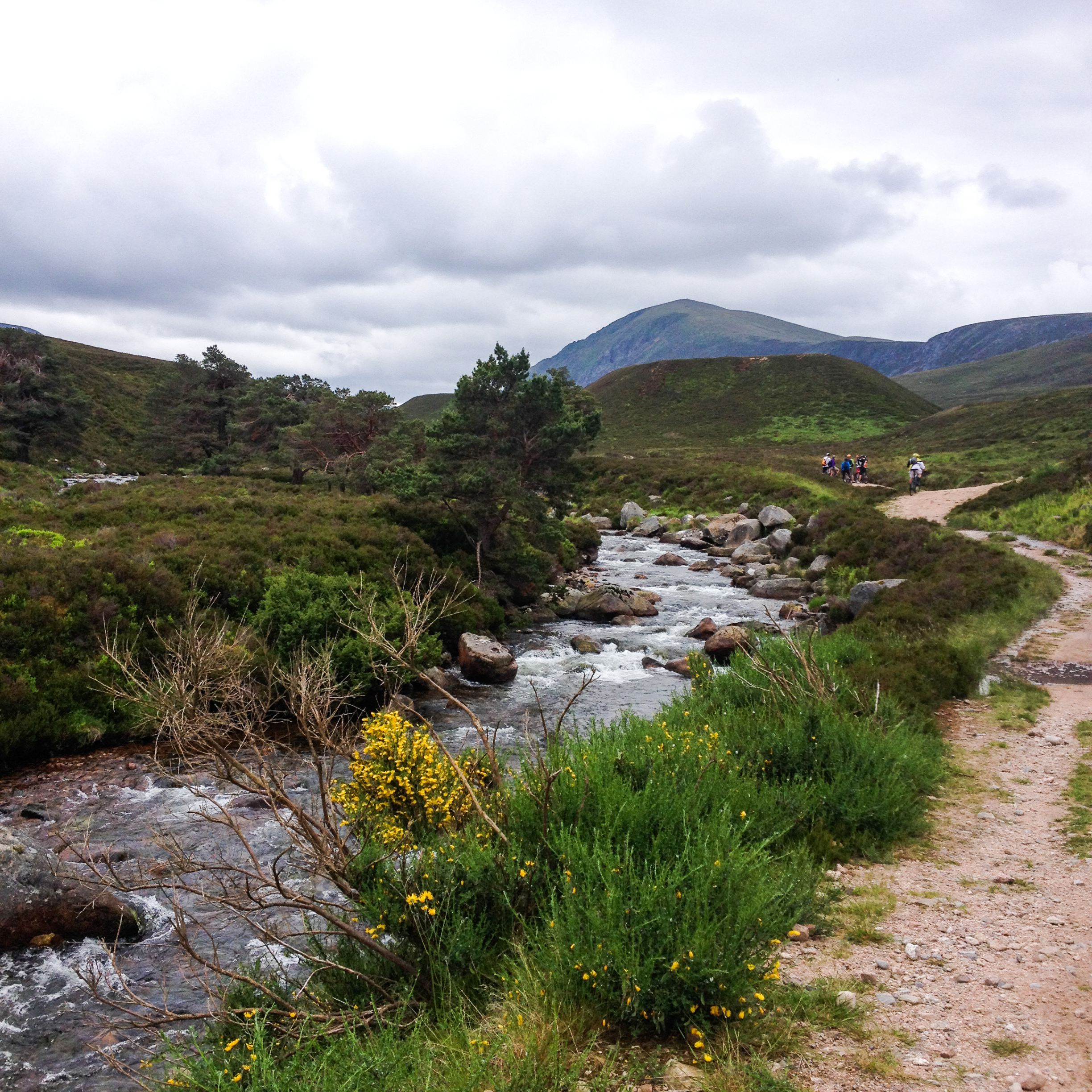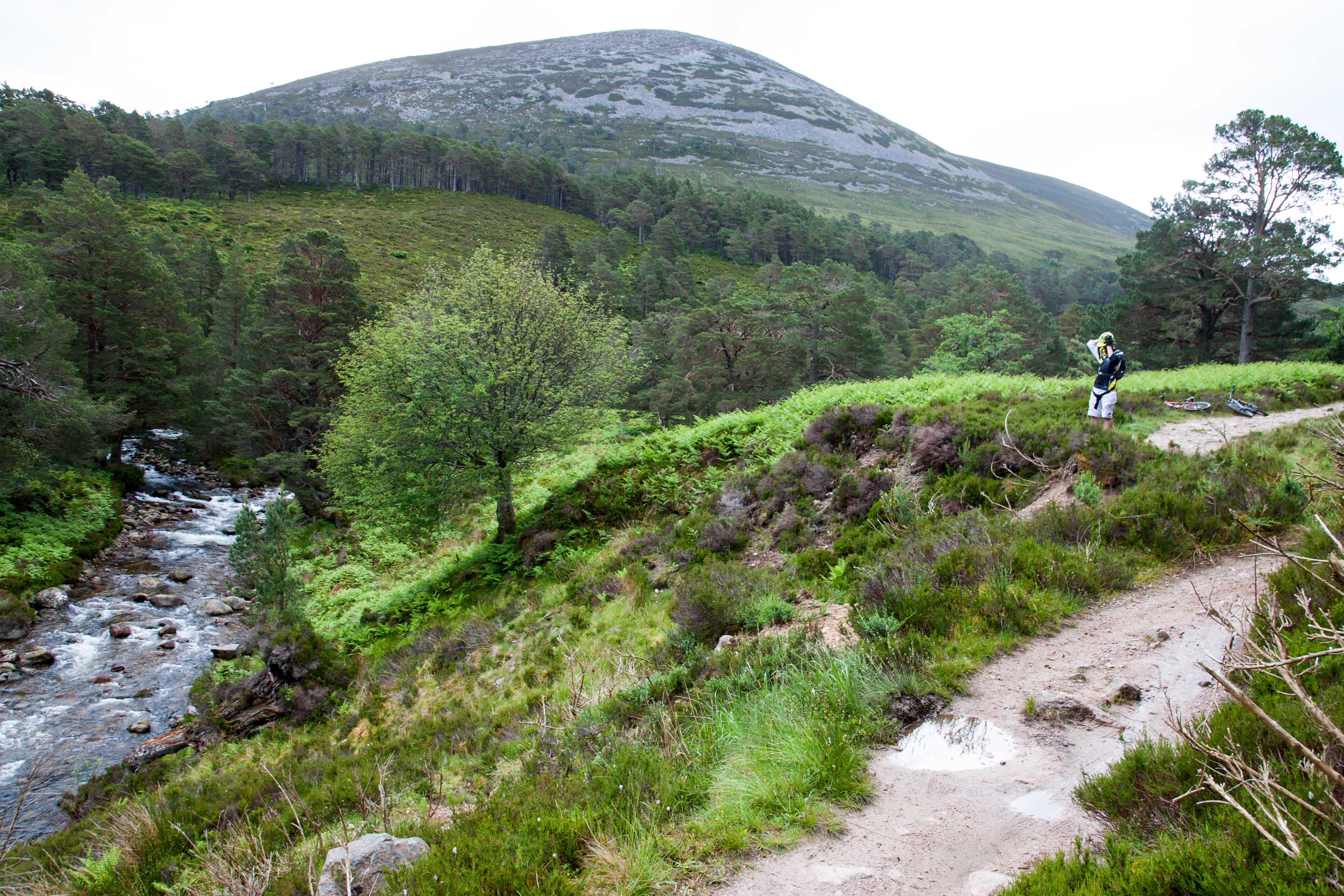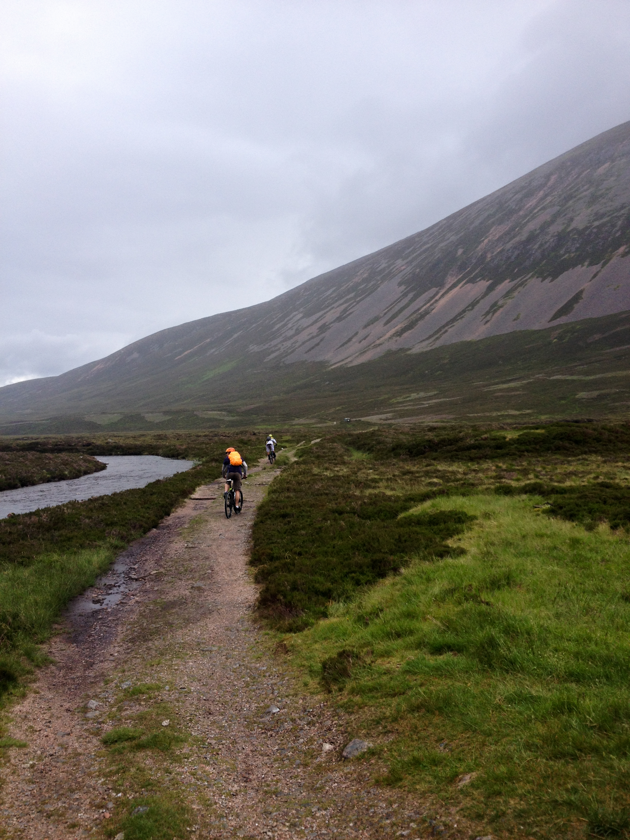 Wyjechaliśmy samochodami do miasteczka Aviemore. Stamtąd udaliśmy się na południe w stronę jeziora Loch Einich, które było naszym punktem docelowym. Trasa o długości około 30 km (razem w obydwie strony) i umiarkowanym stopniu trudności. Napewno nie w typie osób, które lubią przejażdżki kabrioletem, a potem wyciągają koszyczek z jedzeniem i piknikują na zielonej trawce 😉 Kiedy dojechaliśmy do jeziora, skryliśmy się przed wiatrem i zaczynającym padać deszczem i szybko pochłanialiśmy nasze owsiane i inne energetyczne batoniki. A potem trzeba było szybko pedałować spowrotem do Aviemore, żeby sie rozgrzać… 🙂 Trasa powrotna była już z górki…