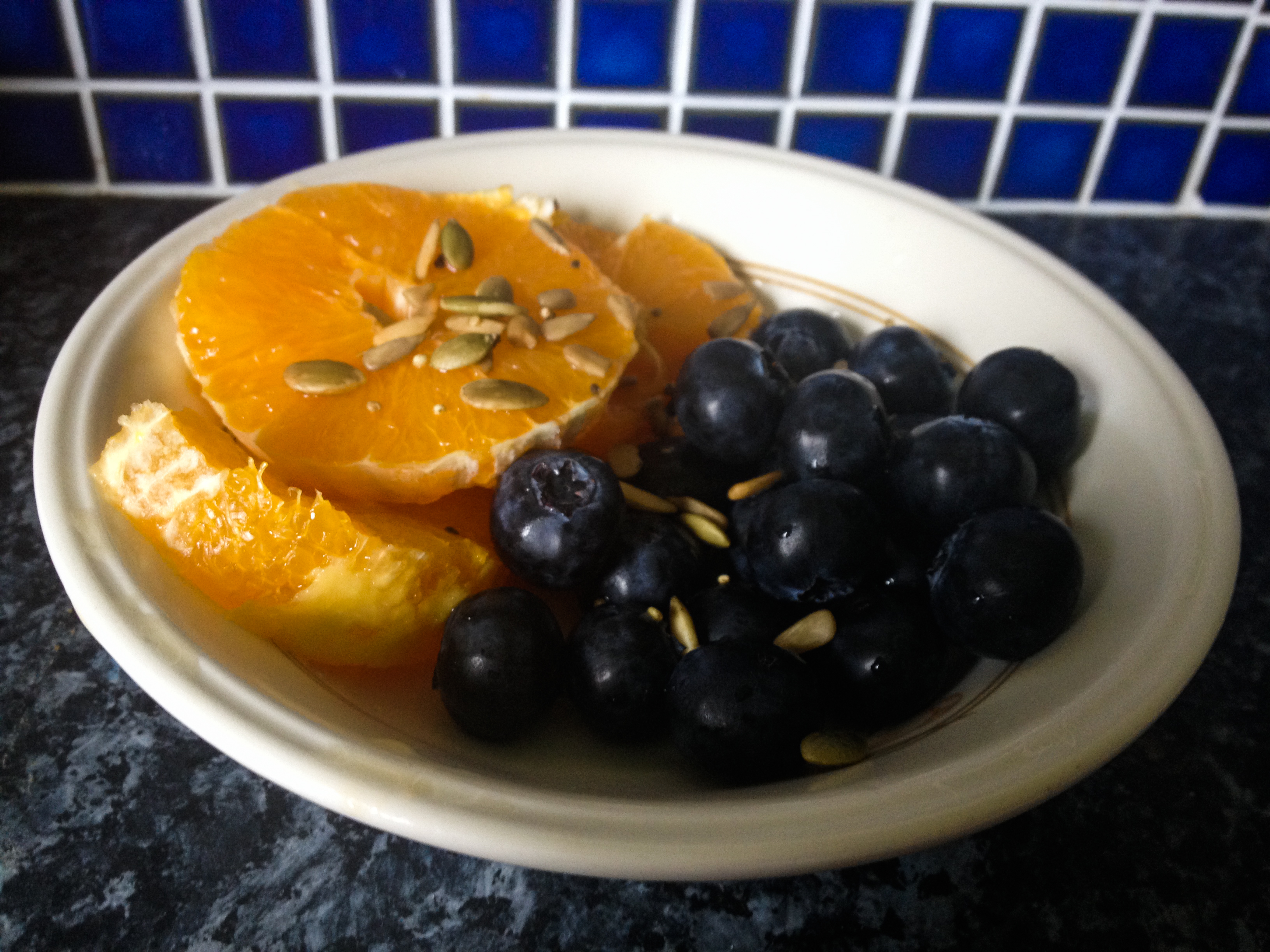 jagody i pomarańcze z nasionami dyni i słonecznika w miodzie
