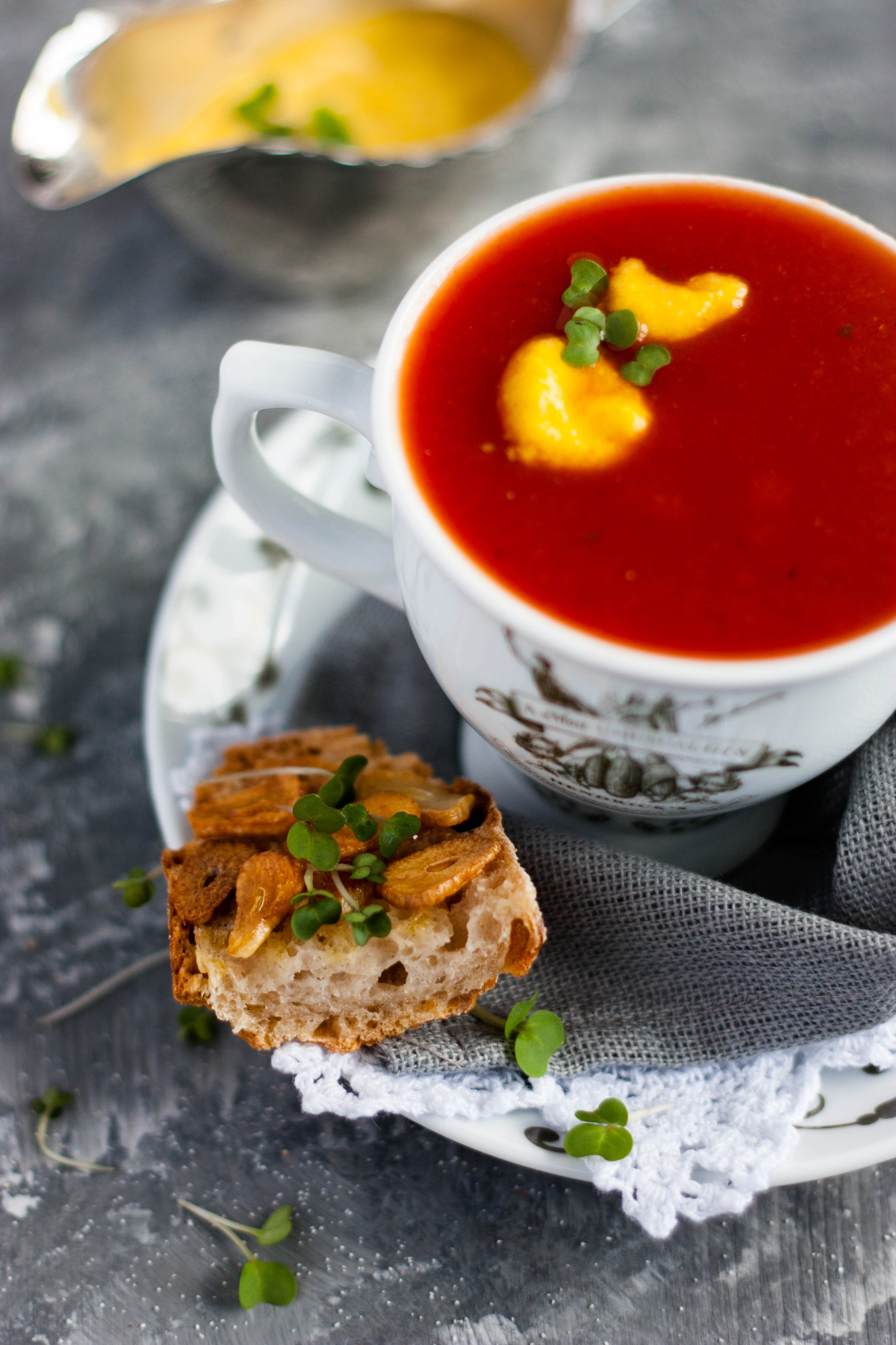 To było mistrzostwo świata! Poprosiłam, aby przekazać kucharzowi, że dawno nie jadłam tak pysznej zupy! Była gorąca i naprawdę pachniała pieczonymi pomidorami. Podczas pogawędki z Panią, która mi zupę serwowała, dostałam pomysł na inną zupę, z pieczonych buraków…i też ją zrobię, bo jesiennie bardzo, a raczej zimowo się zaczyna.