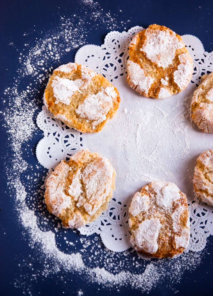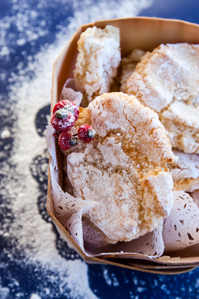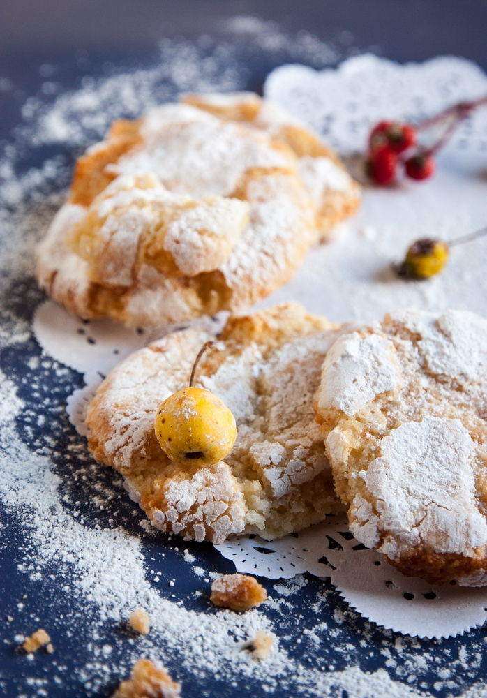 Ricciarelli piekę od kiedy pierwszy raz odwiedziłam Toskanię parę lat temu. To ciasteczka świateczne wypiekane na Boże Narodzenie, jednak ze względu na ich popularność są dostępne w sprzedaży cały rok. Składniki ciastek to mielone migdały, białka jajek i dodatki jak wanilia, cytryna lub miód. Zwykle robię je z białek, ale tym razem chcąc zrobić przyjemność komuś, kto rzadko jada wypieki właśnie ze względu na jajka, zrobiłam je więc …z siemienia lnianego. Ugotowałam siemie lniane w wodzie, po lekkim przestygnięciu odcedziłam powstały kisiel od ziaren. Po wystygnięciu powstaje bardzo bardzo gęsty kisiel, coś na konsystensję białka jajek. I to cudo można ubić na pianę i zrobić ciastka, które absulutnie nie różnią się od tych pieczonych na białkach. Ciastka sa najlepsze po 2-3 dniach. „Kruszeją” trzymane w słoju lub zamykanym pudełku 🙂