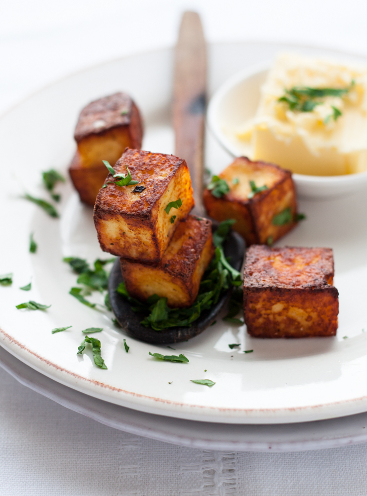Świeżo zrobiony, odsączony z serwatki i schodzony w lodówce panir kroję w plastry, kosteczki lub lub po prostu na mniejsze kawałki. Na patelni rozgrzewam kawałek masła i najpierw je klaruję, zbieram łyżką utworzoną na wierzchu pianę i wyrzucam. Masło pozostałe na patelni podgrzewam i dodaję pokrojony na cząstki ser. Posypuję solą i przyprawami np odrobiną warzywnego bulionu w proszku. Smażę do momentu, aż ser nabierze złocistego koloru. Jeszcze ciepły usmażony ser, posypuję zieloną pietruszką. Jest świetny jako przekąska z chlebem i rozsmarowanym avocado zamiast masła.