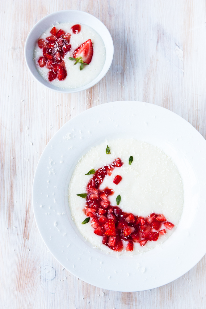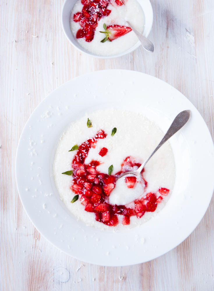 Można podawać od razu ze świeżymi pokrojonymi truskawkami lub musem truskawkowym wymieszanym z dobrej jakości dżemem i startą biała czekoladą.