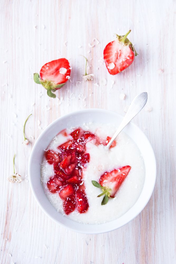 Jak już wspominałam tego typu kaszki nauczyłam sie jeść dawno temu, kiedy doglądajac dzieci w pewnej rodzinie, na śniadania jadłam kaszki gotowane przez ich mamę. I to dlatego że były przepyszne i je uwielbiałam. Prażone w specjalnym garnku z podwójnym dnem i ściankami, pomiedzy które wlewana była wodą i kaszka nigdy sie nie przypalała. Przygotowywałam dwie miseczki, małą i większą. Dwie łyżeczki. Jedną dla malucha, jedną dla siebie. Pozwalałam dziecku nałożyć truskawki do obu miseczek, opowiadajać przy tym „niesamowite” historie o misiach jak również innych bajkowych stworzonkach. Mówiłam: dla dużego misia- duża miseczka, dla małego- mala miseczka bla bla 🙂