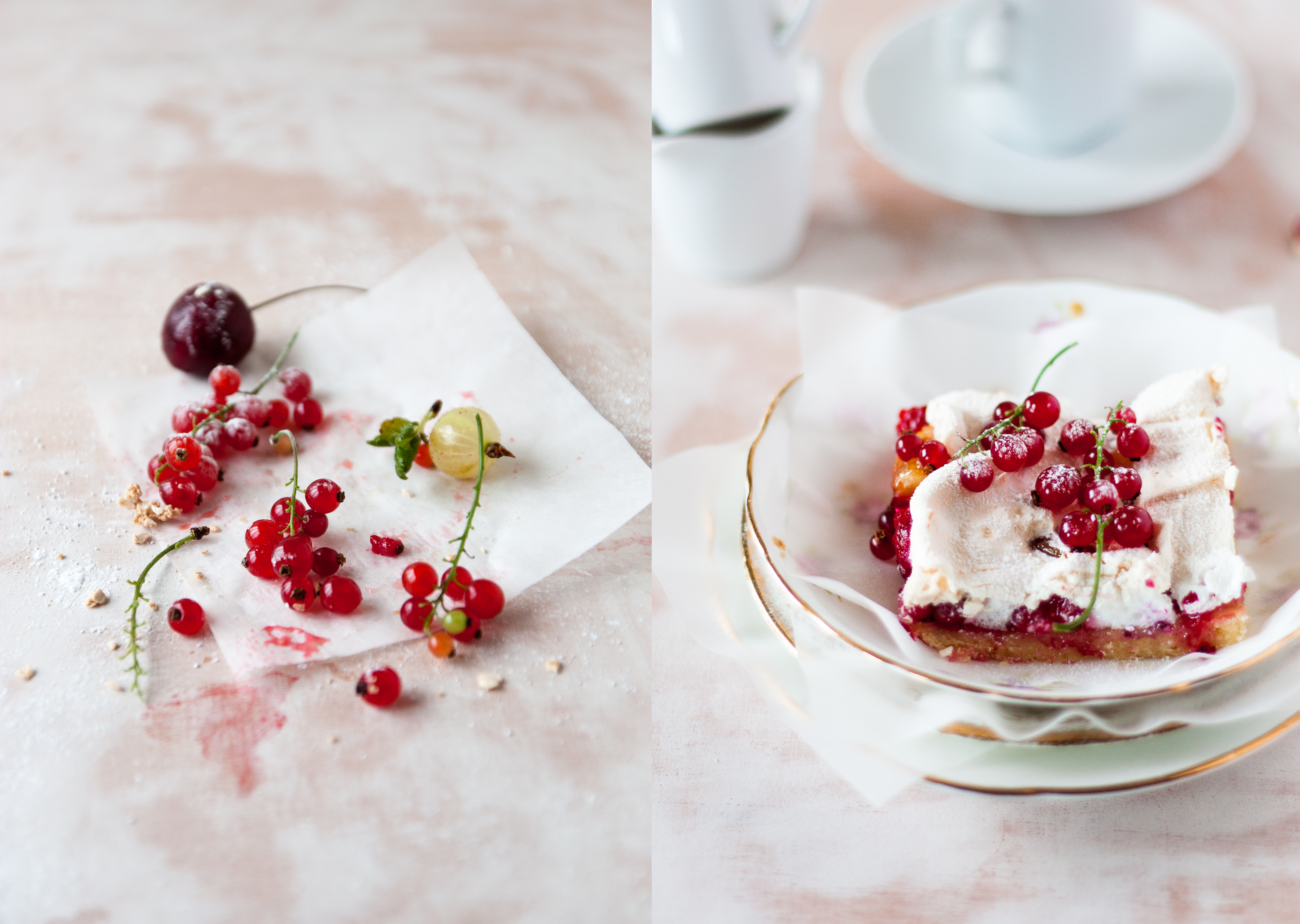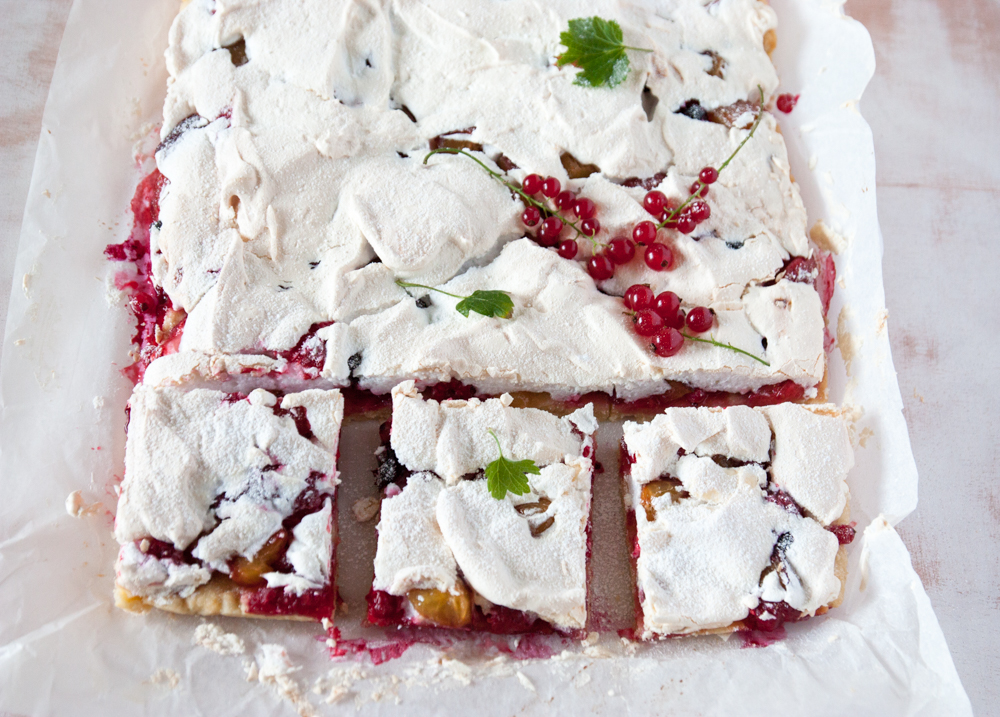 To jest wciąż letnie ciasto z kwaśnymi owocami i słodką bezą. Najlepsze lekko ciepłe, ciasto, które moja mama często piecze latem. Jest lekkie i nie bardzo słodkie, takie na gorące, niedzielne popołudnie do kawy.