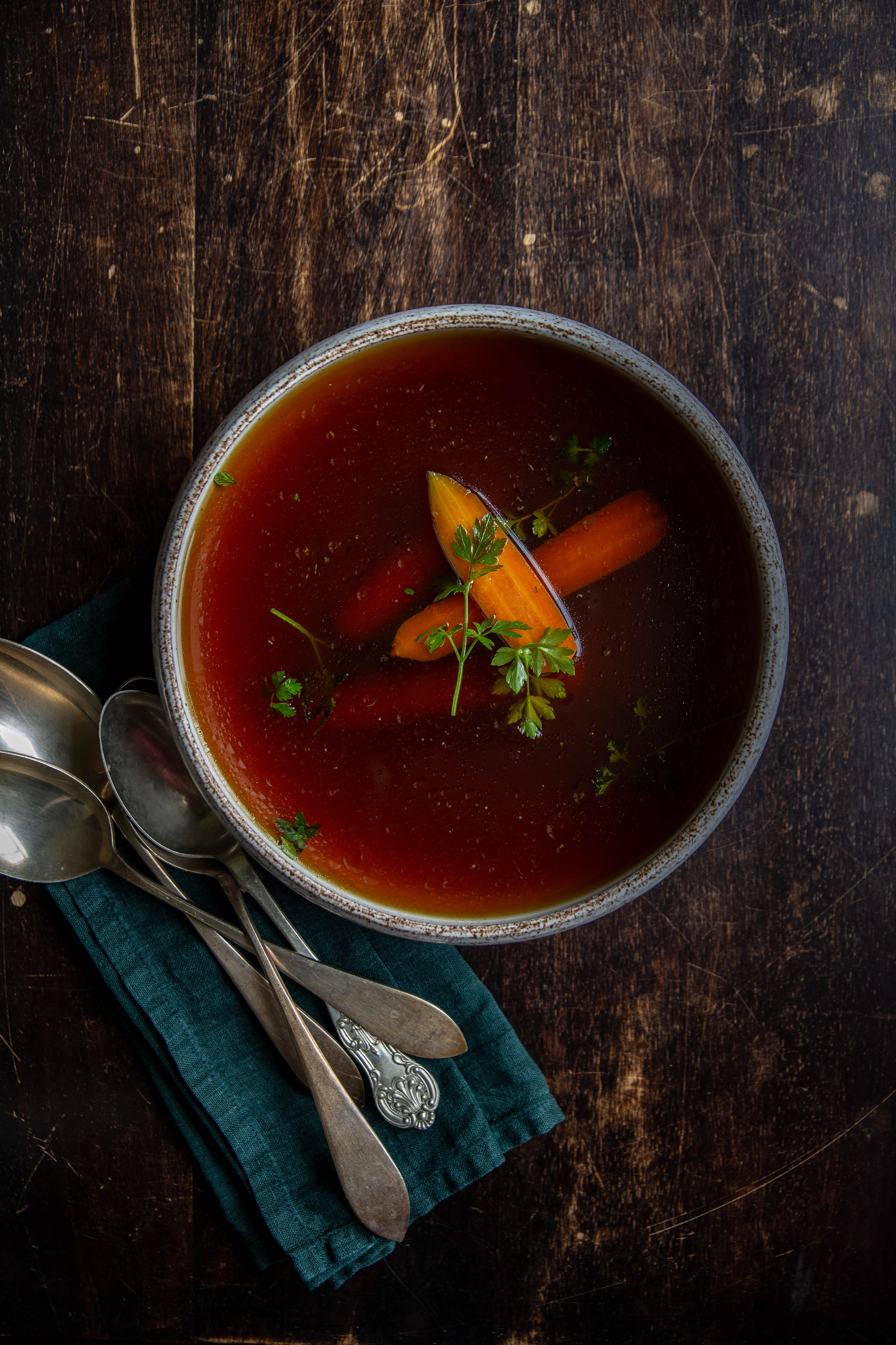 Ten rosołek to wielka bomba smaku umami o pięknym, głębokim kolorze.